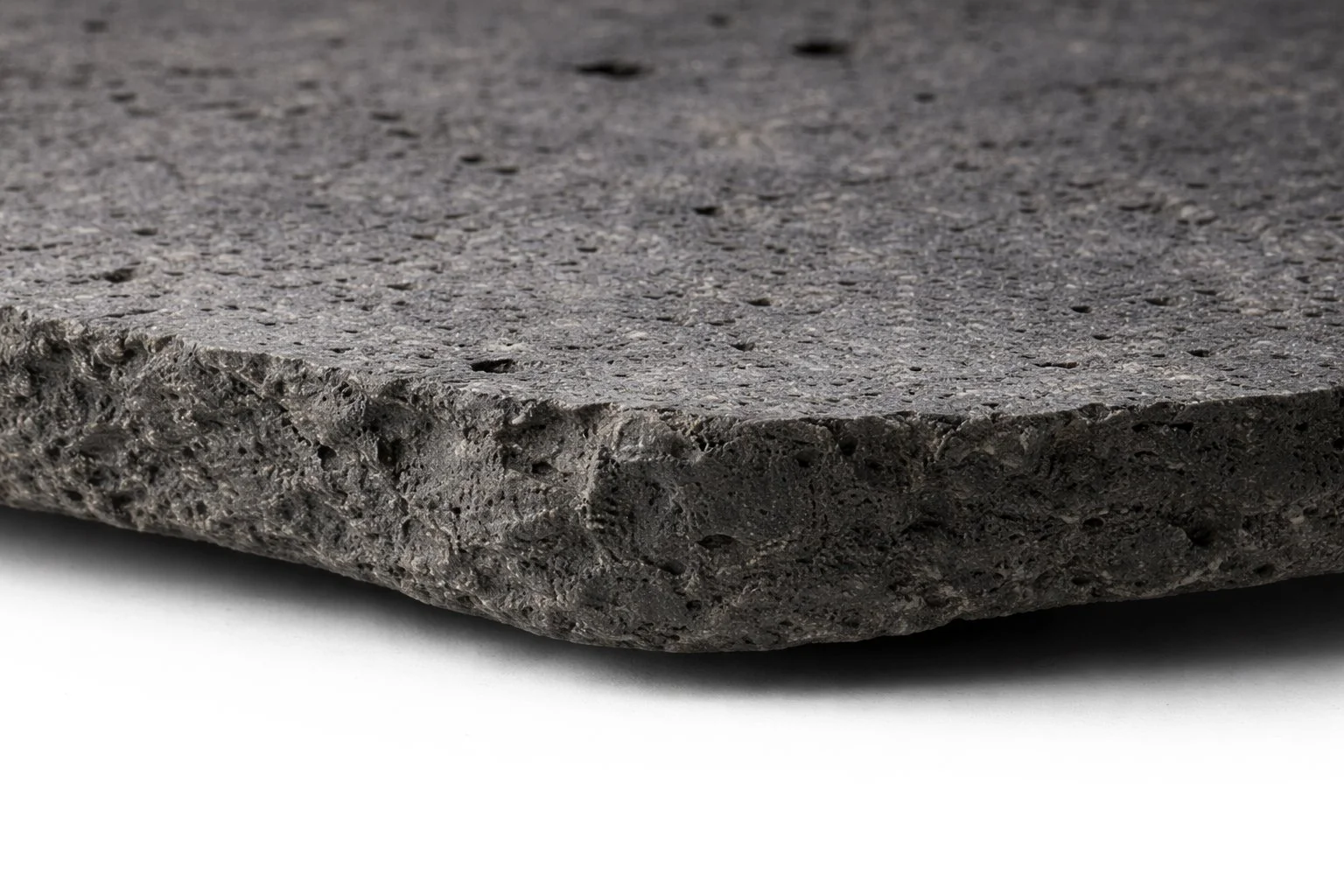 A low table formed from a single slab of solid Pietra Lavica. The slab retains a hand-chiseled perimeter, exposing the fractured edge of the volcanic material, while the upper surface has been lightly worked to produce a calmer plane